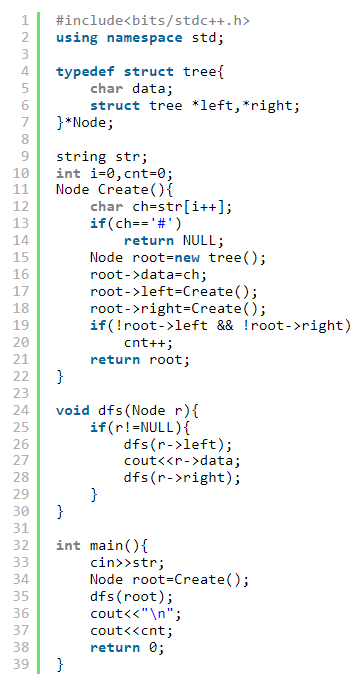 提示:一棵二叉树的先序序列是一个字符串,若字符是‘#’,表示该二叉树是空树,否则该字符是相应结点的数据元素。