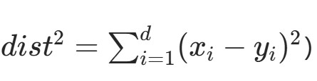 距离度量:使用欧几里得距离的平方(避免浮点精度损失,公式:dist2=∑i=1d(xi−yi)2)。